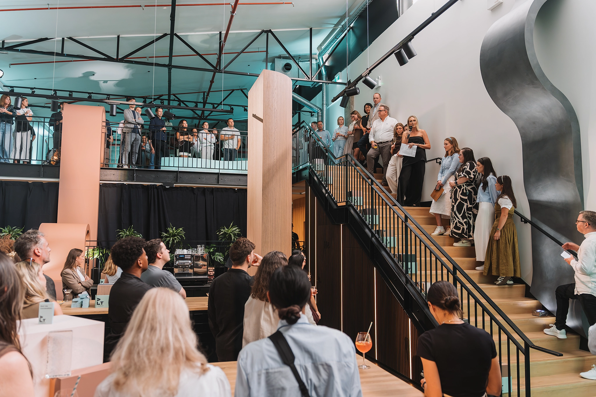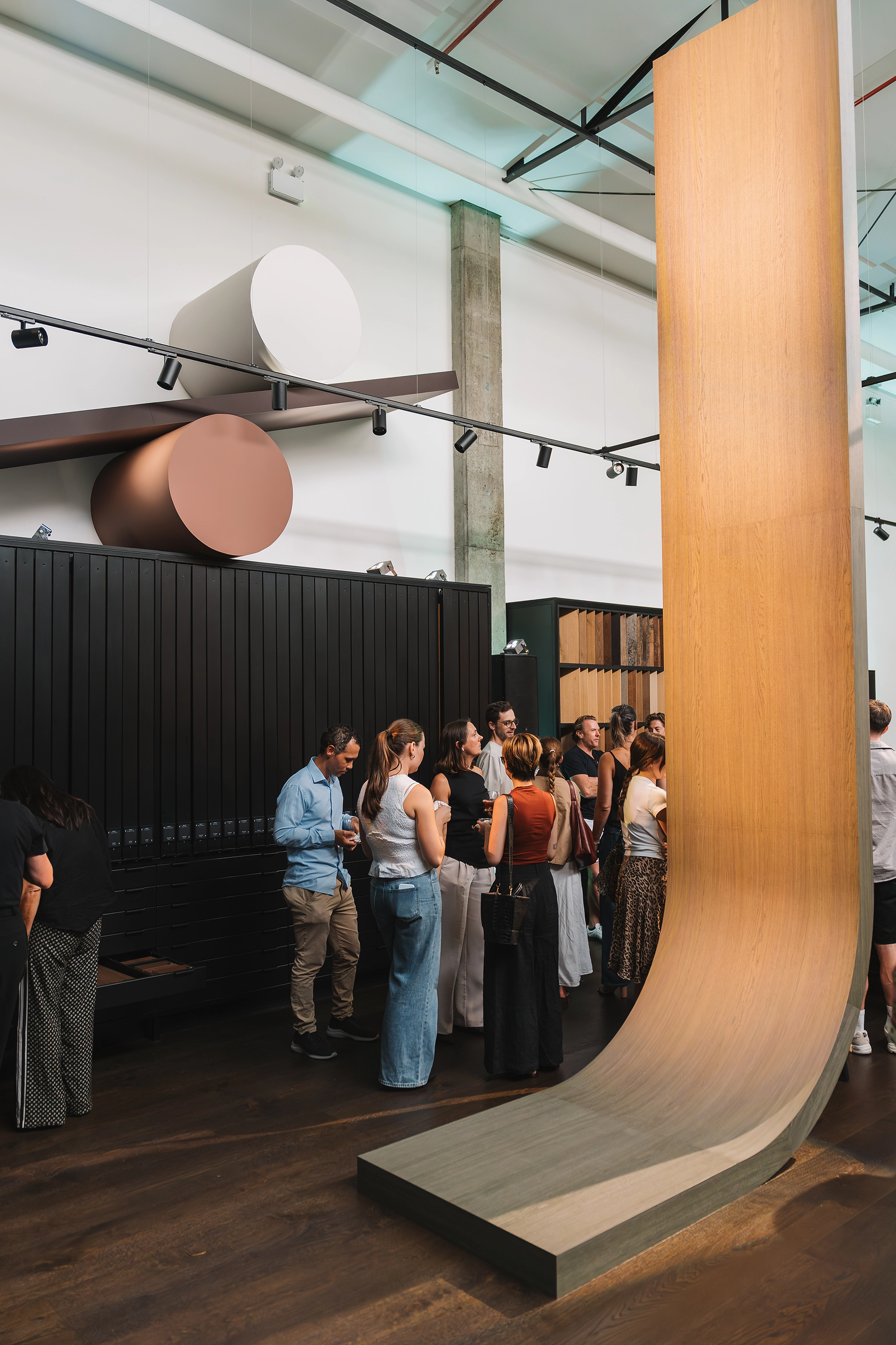 To launch ALT™, we moved beyond traditional displays. Surrounded by our valued clients, collaborators and friends from across the architecture and design community, the evening became a shared celebration of innovation and possibility. Towering sculptural forms rising over five metres high anchored the space, with select pieces suspended from the walls, seeming to defy gravity. Curves, intricate detailing and monolithic forms pushed the boundaries of how decorative panels are typically used. The sculptures were expertly constructed and installed by Dimension Shopfitters, with the monoliths designed in collaboration with Scott Fitzsimons Studio. The result was an immersive statement of intent, a physical expression of ALT’s ability to challenge the ordinary and redefine application possibilities.