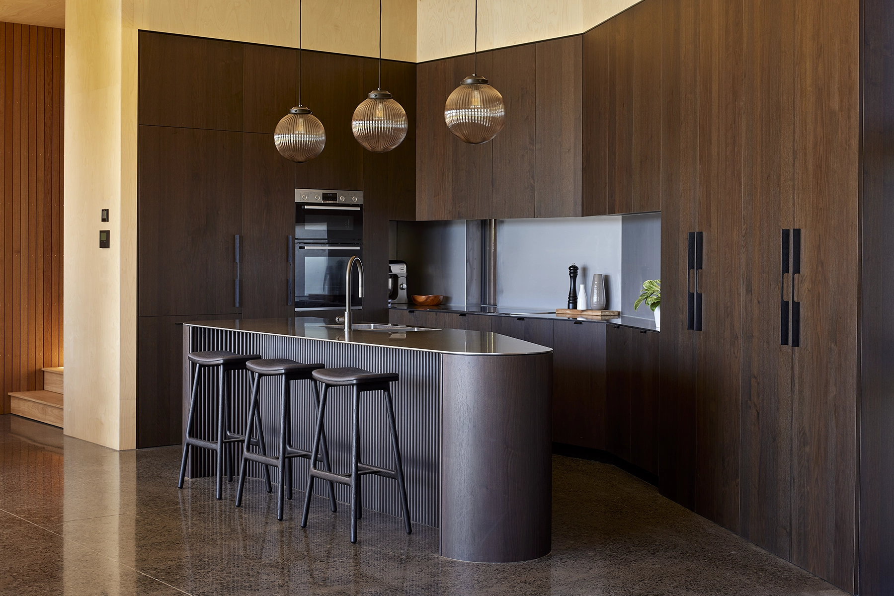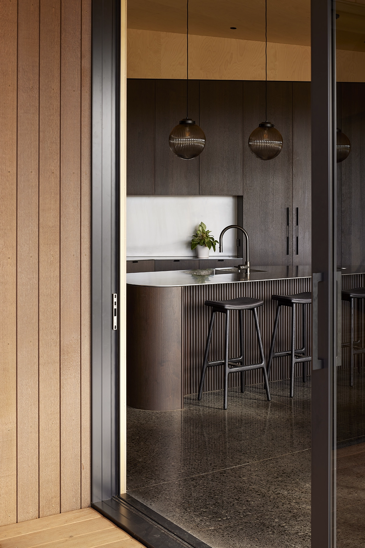 This family bach in Raglan embraces alternative ways of living, fostering connection and privacy. A central covered outdoor area frames the stunning view, while the circulation strategy promotes a sense of togetherness. The building features a metallic shell and subtracted exterior spaces, blending with the land's topography.