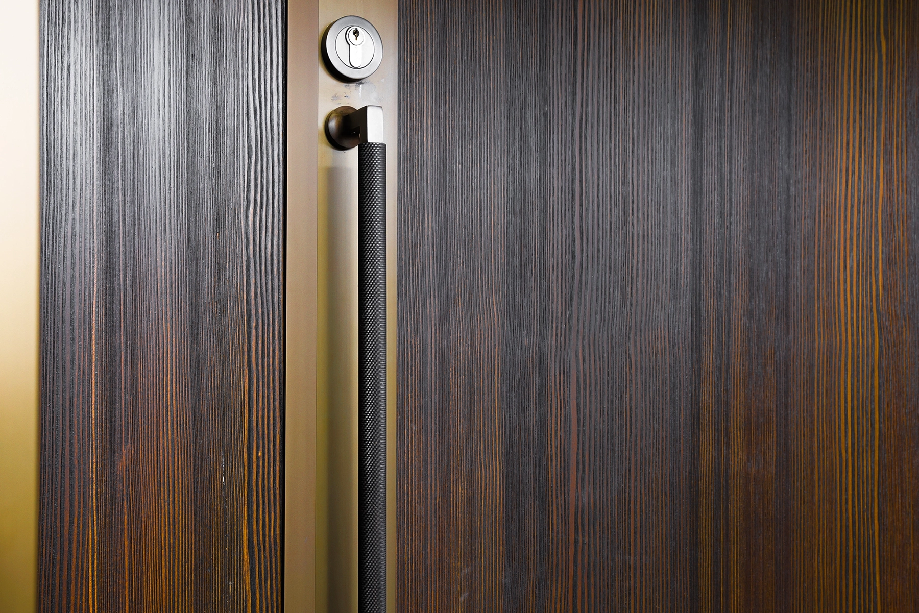 Spring larch timber veneer has been stained.