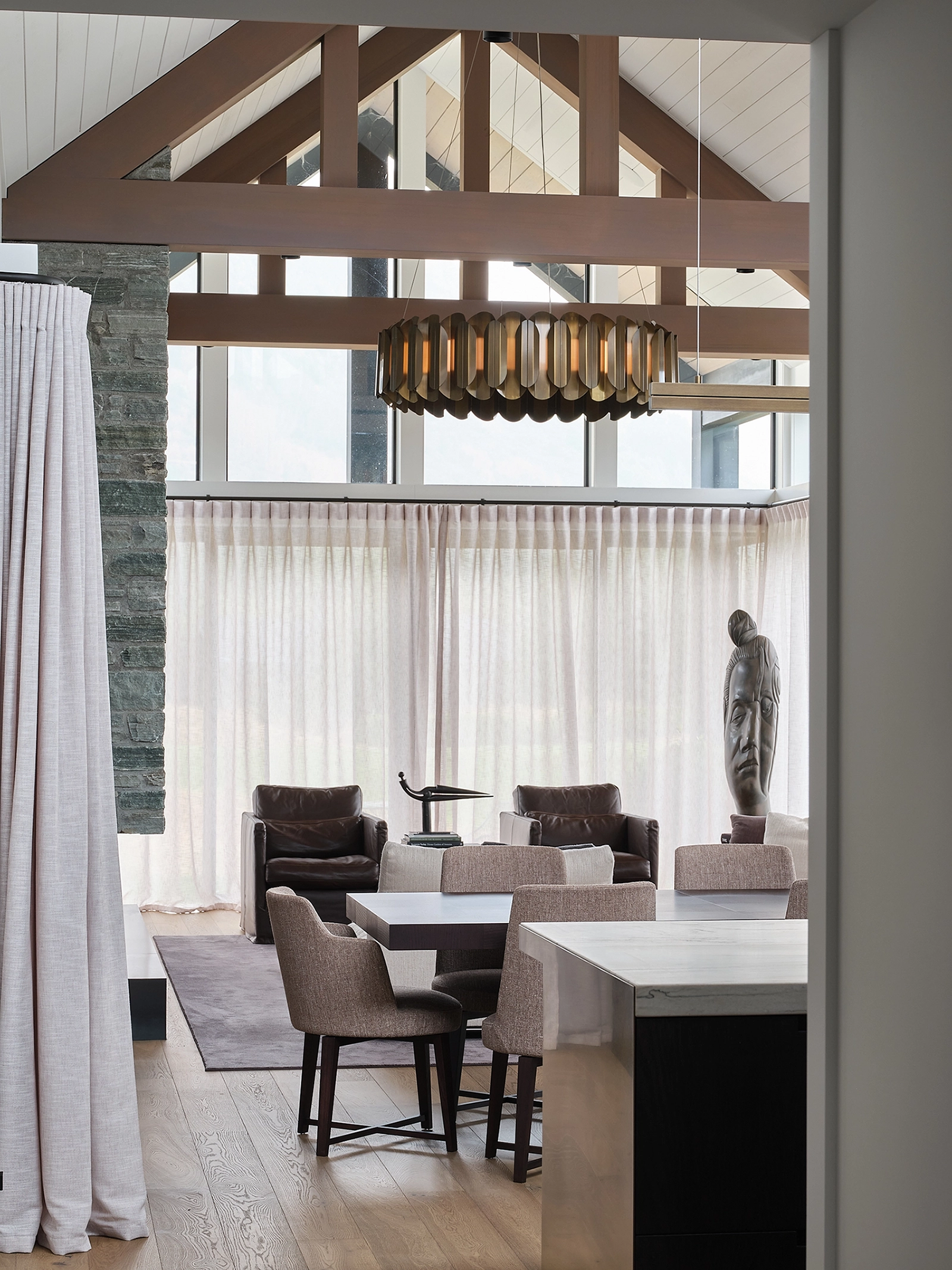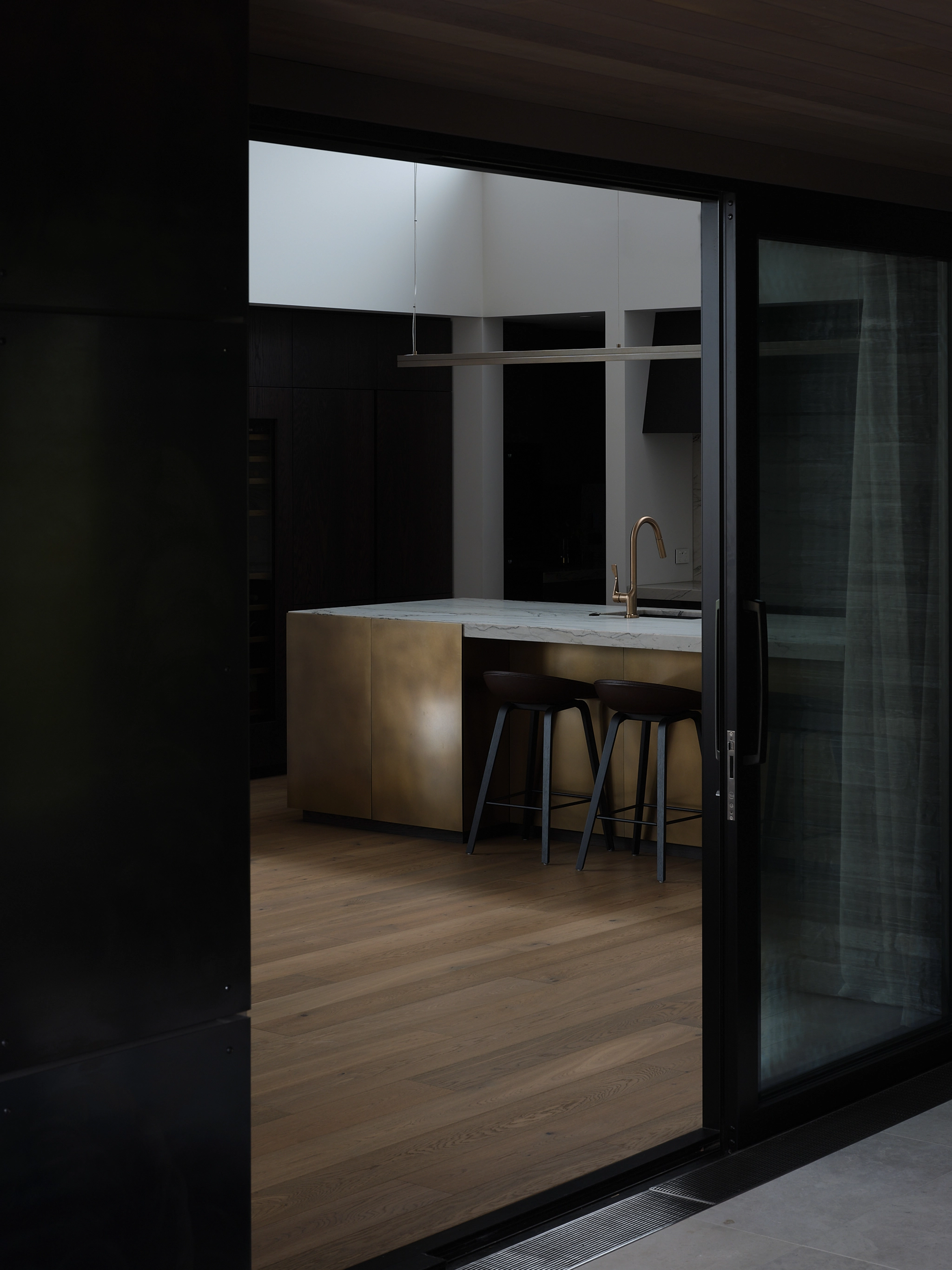 A sophisticated family retreat. The flooring was a custom colour created to suit the warm tones of the ages brass and cooler tones of the schist fireplace, the tone of the wood needed to sit in-between holding grey, ash and lighter oaky tones making for a neutral foundation.