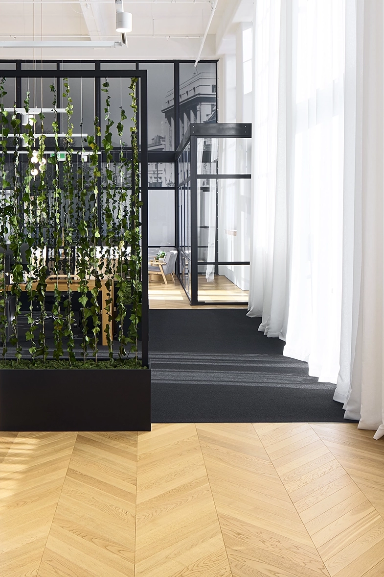 With a refined material palette, soft colors, and lush greenery, the space exudes luxury and authenticity. Discover a harmonious blend of heritage and contemporary design, perfect for inspiring productivity