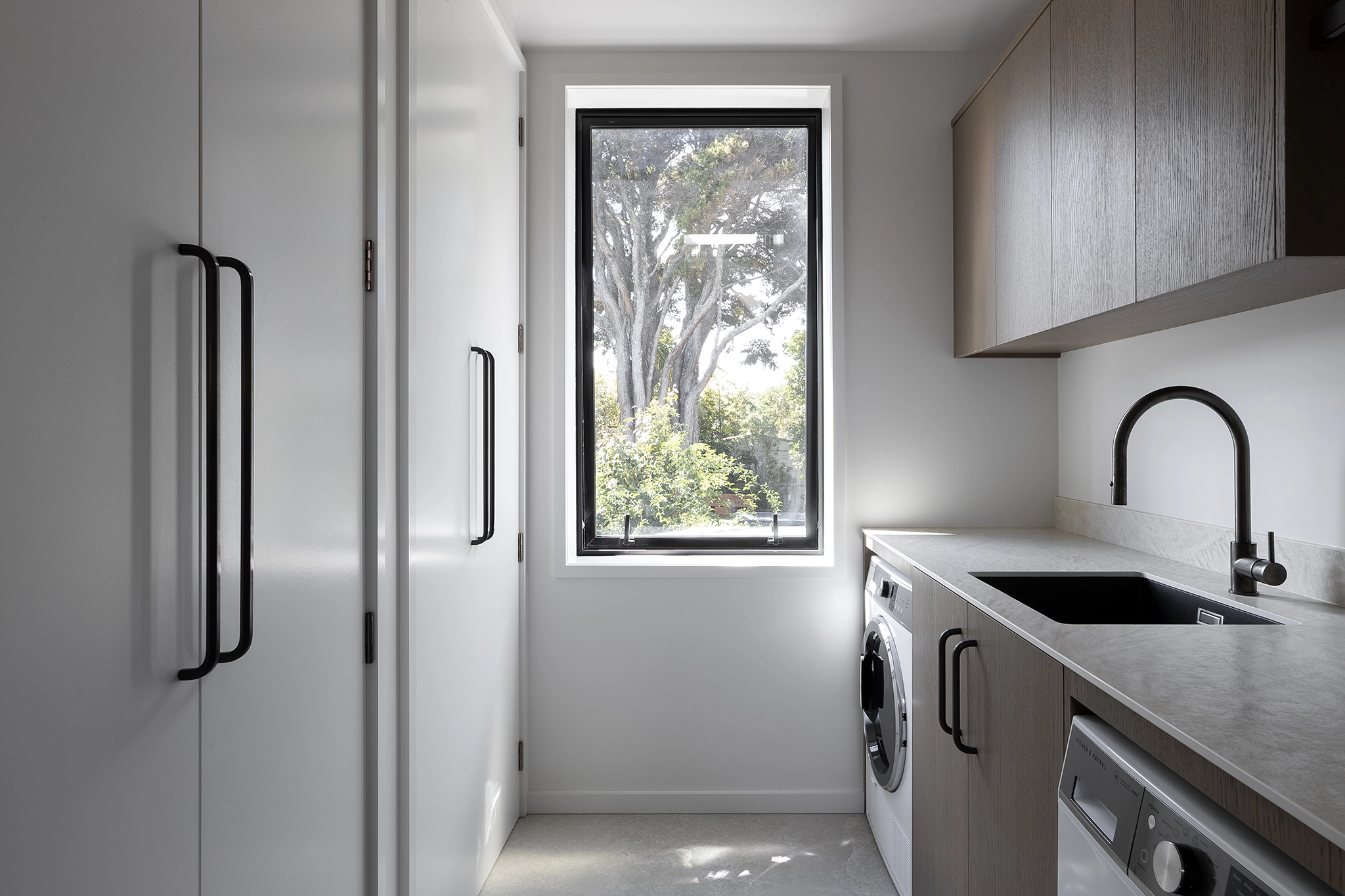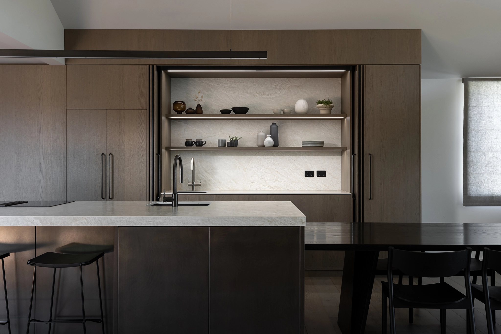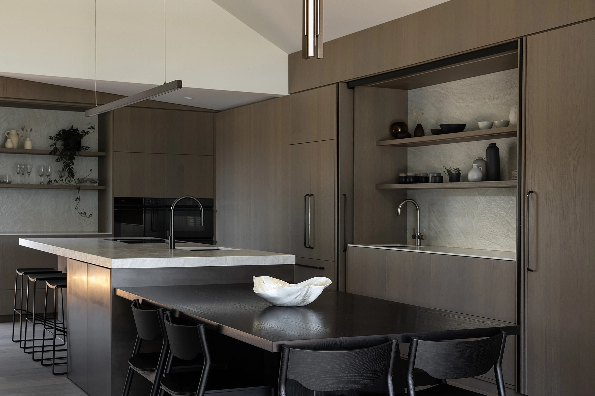 Residential Kitchen finalist at the 2021 Interior Awards, Annika and her team created a practical kitchen for entertaining comfortably and hiding those dirty dishes or appliances. The butler’s pantry with bio fold pocket doors a smart and utilitarian concept for this raglan home, while keeping the design seamless and beautiful.