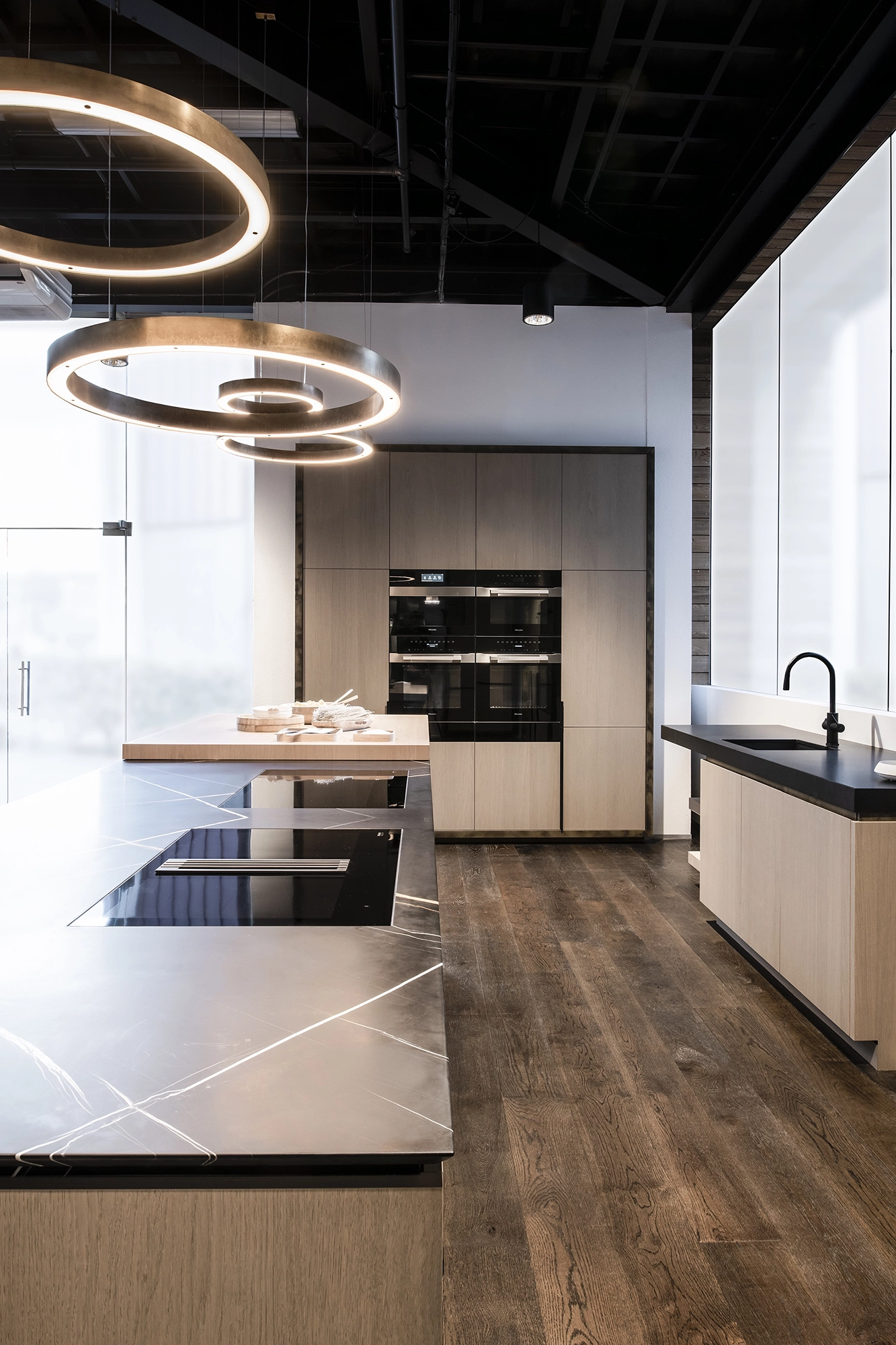 A showroom to show off the innovative appliances used within beautiful, on trend designs has been well and truly achieved in Miele’s Christchurch show space. Davina Sutton’s utilisation of different shapes has created a beautifully dynamic space, from the clean lines between the oak veneers, to the island’s geometric edges, paired with round light fixtures. There is something so sleek and stylish about this design, luxury with a side of edge. Any client walking into this space will be blown away at every material used and the craftsmanship involved, a great way to show customers how luxury finishes come together to make an amazing kitchen.