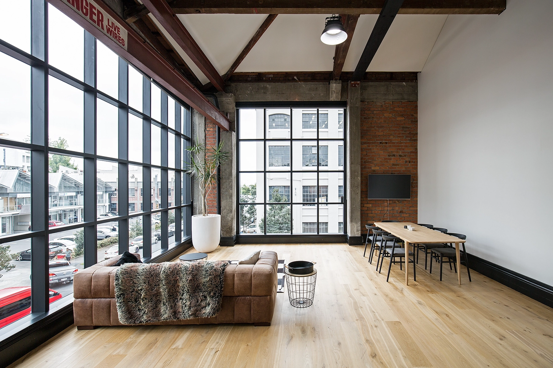 Placed on the corner of Faraday and St George’s Bay road in Parnell, this amazing building has been refurbished into a creative hub. Office’s and retail spaces utilise the beautiful building, featuring large steel windows and exposed beam ceilings. These suites are full of character, natural light and stunning materials.