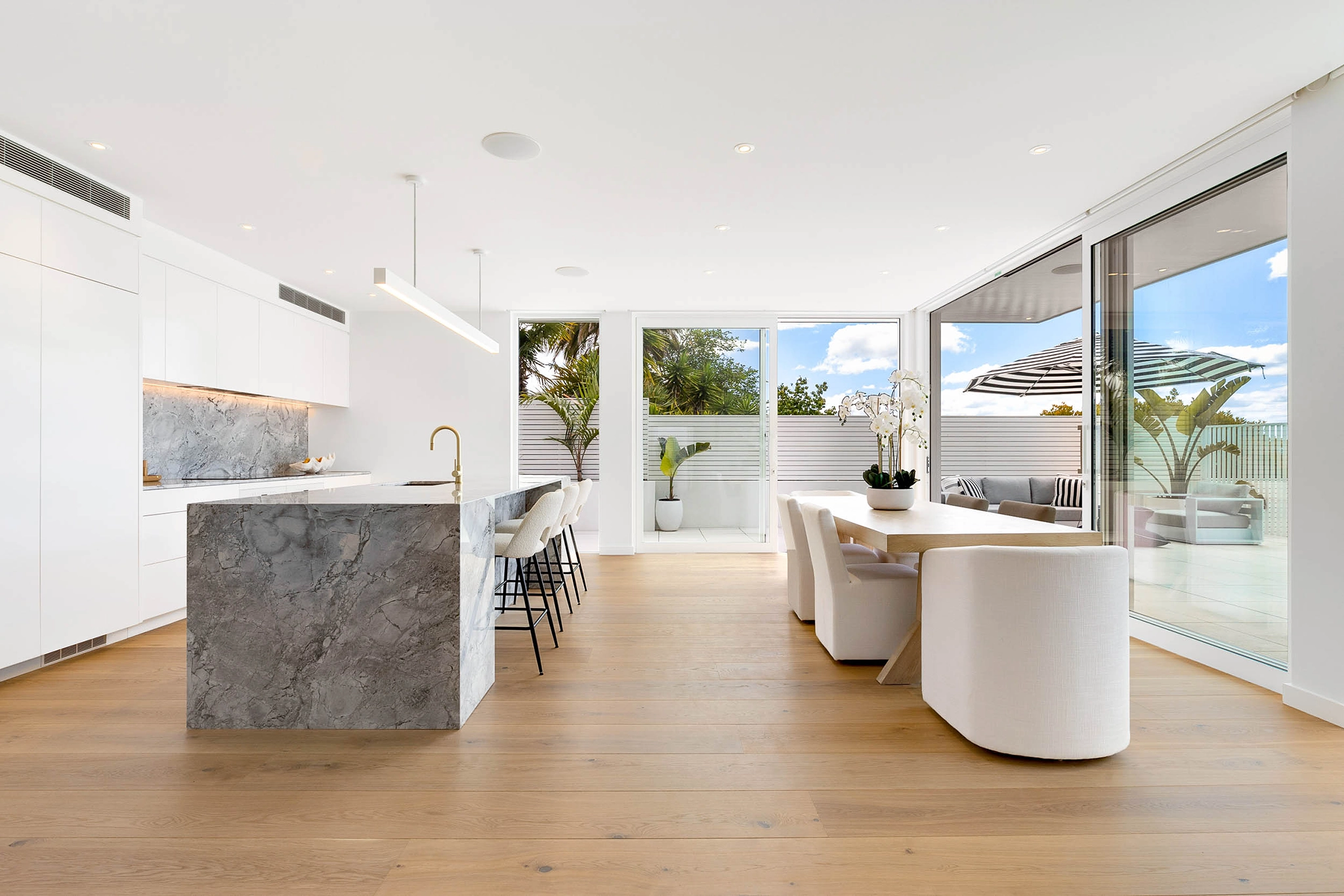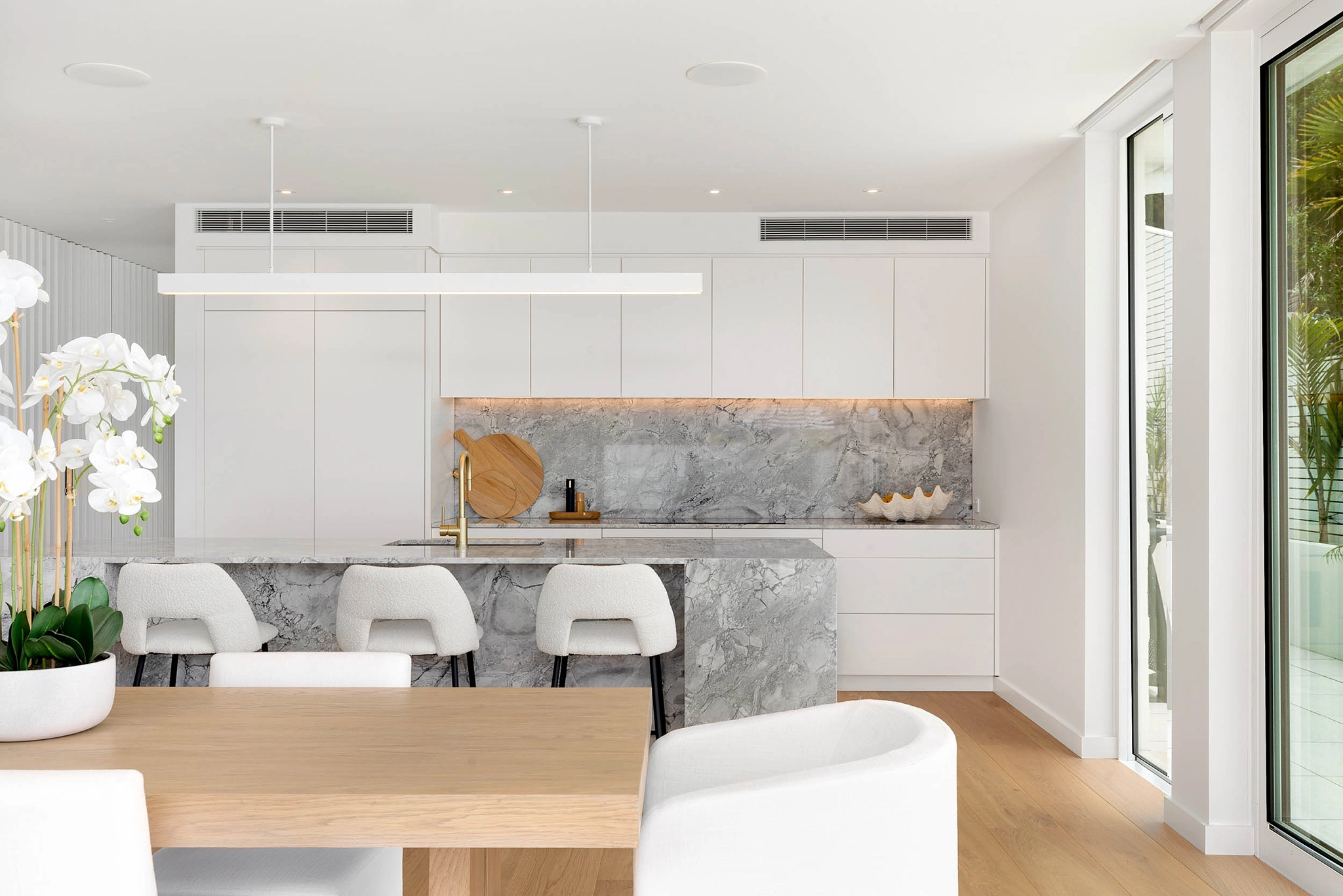 An effortless blend of Mid-century, and contemporary, with Mediterranean boho accents. The designers brief was to encapsulate a glamorous Palm Springs-style, luxuriously casual, yet sophisticated and beachy home. Features wide plank European oak floors.