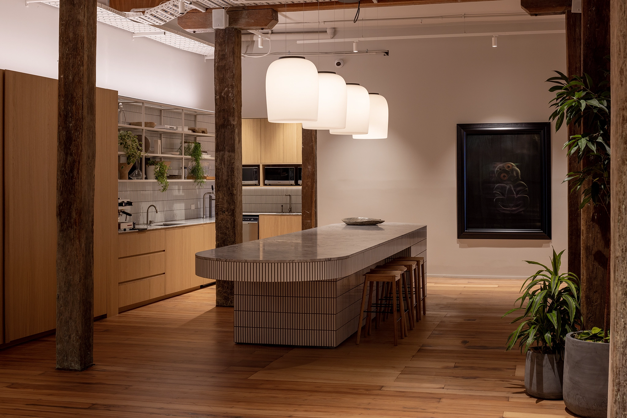 Featuring our Shinnoki Ivory Oak veneer by Decospan in the kitchen & joinery throughout these stunning offices - crafted by Stylehouse Design Ltd.